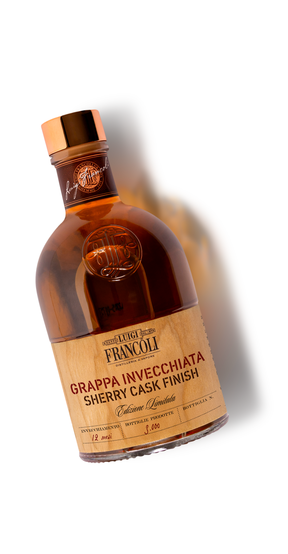 Dopo un primo passaggio in legno di rovere francese, questa Grappa completa la sua maturazione in botti precedentemente utilizzate per elevare Sherry, arricchendosi delle sue note caratteristiche. Nasce così un prodotto unico, per chi è alla ricerca di nuove sensazioni.